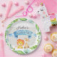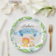 Este es un plato de papel a juego con una invitación a animales de la jungla de safari