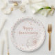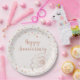 Plato De Papel Aniversario feliz de oro Rosa con puntos de polka