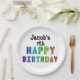 Plato De Papel Aniversario feliz del Arcoiris personalizado