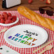 Sirva dulces de cumpleaños con estilo con estos platos de papel de cumpleaños. Con letras en negrita de arcoiris con un contorno negro, estas placas se pueden personalizar con un nombre o mensaje. Perfecto para todas las edades y géneros, le dan un toque colorido y festivo a cualquier fiesta de cumpleaños. Duradero y listo para usar, estos platos hacen que la limpieza del fiesta sea fácil y divertida!