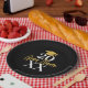 Un plato moderno negro y dorado con un tapón dorado y texto en negrita con un tema. Una gran decoración de fiesta de graduación para celebrar al graduado. Personaliza con un nombre y una fecha.