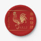Sencillo gallo dorado sobre fondo rojo con bordes dorados de tubería y saludo en chino por este personalizable de placa de papel de Año Nuevo Chino del gallo. Productos coincidentes: servilleta de papel, tarjeta de saludo, postal, pegatinas, sobres rojos... — "El gallo (chino simplificado: 鸡; chino tradicional: 雞/鷄) es uno de los ciclos de 12 años de animales que aparecen en el zodiaco chino relacionado con el calendario chino. El Año de la Lista está representado por el 酉 de carácter de la Subdivisión Terrestre. El nombre también se traduce al inglés como pollo. El gallo es el único ave incluida en el zodiaco chino. wikipedia