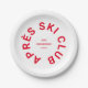Après Ski Club, cresta de la estación de esquí roja de invierno, platos de papel. Personalice con el año de su viaje de esquí, el nombre de la estación de esquí y la ubicación. Perfecto para un viaje de esquí de destino grupal o para una fiesta de despedida de soltera con tema de après ski. Diseñado para coincidir con nuestra Colección Après Ski Club.