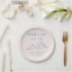 Sirve estilo en tu fiesta de despedida de soltera de invierno con estos platos de papel personalizados que presentan la divertida frase "Après Ski Bach Club" en fuentes de estilo manuscritas de moda. Adornados con una ilustración dibujada a mano de montañas con nieve en las cimas y una paleta de colores beige y azul acogedores, estos platos son la adición perfecta para tu celebración con tema de esquí.