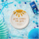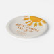 ¿Estás planeando una ducha de bebé para niños? Este lindo plato de papel para bebé está decorado con un sol de color amarillo y dice "Here Comes The Son" en una elegante tipografía retro sobre un suave fondo crema. Personalizable fácil. Utilice la Herramienta de diseño para cambiar el tamaño, estilo o color del texto. Porque creamos nuestra obra de arte no encontrarás esta imagen exacta de otros diseñadores. Acuarela original © Michele Davies.
