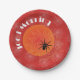 Plato De Papel Araña de cruz en la red con gotas de rocío como