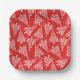 Plato De Papel Árbol de Navidad Blanco con Plaza de Respaldo Rojo