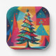 Plato De Papel Árbol de Navidad con capas geométricas de Pop Art