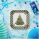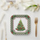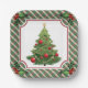 Un hermoso plato de papel para Navidades con un colorido árbol de Navidad con un borde de Navidades y acentos holgados.