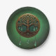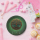 Árbol estilizado de vida enmarcado en un marco elegante y redondo. El árbol desprende una elegancia elegante a través de sus delicadas ramas doradas. Las ramas están artísticamente diseñadas y parecen retorcerse suavemente, simbolizando el dinamismo y el crecimiento de la vida. Las ramas doradas están adornadas con brillantes piedras preciosas de color verde esmeralda que a los purpurinas les gustan las pequeñas joyas del sol. Este diseño transmite una sensación de armonía, crecimiento y conexión espiritual con la naturaleza, perfecta para cualquier habitación que necesite de inspiración y tranquilidad.