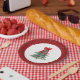 Navidades Vieron platos fiestas con árbol de Navidad y arco rojo y arado.