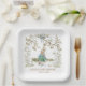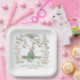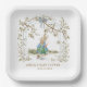 Charming Beatrix Potter-inspired paper plates for your little one's shower! Featuring Peter Rabbit cozied under a blooming floral arch with delicate pink flowers, greenery, a pretty bow, and gentle pastel tones—Peter holds his carrot in timeless style. Custom text reads "AMELIA'S BABY SHOWER JUNE 23" in sophisticated blue. Great for spring garden parties, nursery vibes, or whimsical baby showers. Sturdy, absorbent paper plates (sets of 8), available in multiple sizes, premium Zazzle printing that matches your napkin set beautifully and adds storybook magic to every place setting.