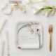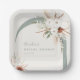 Arco floral bohemio, platos de papel. Flores de acuarela estilo boho, hierba pampas y follaje verde delicado con formas de arco en beige y verde salvia.