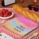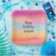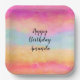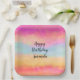 Plato De Papel Arcoiris amarillo rosado Abstract Stripes Cumpleañ