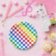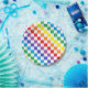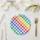 Arte digital abstracto de cuadrados blancos y de color arcoiris en una formación de cuadros a cuadros.