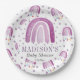 Plato De Papel Arcoiris morado personalizado de Baby Shower