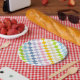 Plato De Papel Arcoiris pastel bajo control