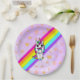 Plato De Papel Arcoiris rosa unicornio con mariposa en la nariz