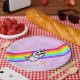 Pink Rainbow Unicorn con mariposa en los platos de la fiesta de cumpleaños de Nose para una pequeña fiesta de cumpleaños.
