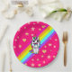 Plato De Papel Arcoiris rosa unicornio con mariposa en la nariz