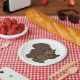 Una ardilla descarada sujeta una bellota. Este diseño parece realmente efectivo en estas placas de papel