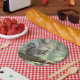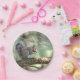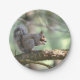 Este plato de papel presenta una ardilla comiendo su almuerzo en el bosque de Connecticut.
