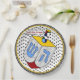 ¡Qué divertido! Esta cena alegre o el plato de fiesta de Hanukkah presenta el nuevo diseño original de estilo dreidel de Jewbilee que es simplemente escaso para los puntos de polka y colores primarios audaces. Campo de texto de globo de charla opcional con personalizado para Título o Nombre del destinatario.