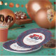 El arte popular original del diseñador LeahG aparece en este moderno y trendy conjunto de platos de papel con tema de Arte Popular. Los colores azul, rojo y blanco, ciervos y pájaros aparecen en este artículo de fiesta de ALEGRÍA, ideal para fiestas de Navidad.