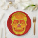 El cráneo inspirado en My Day of the Dead celebra la vida y la muerte con un collage de mis pinturas de hojas de álamos, con los colores brillantes y brillantes de la caída.