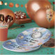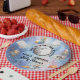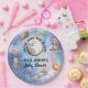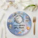 This whimsical baby shower plate has an entire space scene on it, complete with astronaut teddy bears, space crafts, stars, planets and a telescope. It says "We're Over the Moon" in a circular pattern around the moon and then below is a template for you to put just the Mom to Be's name or Mom and Dad's to be name with "Baby Shower". The background is a galactic space scene with different colors and stars. These make the cutest plates for a baby shower luncheon or snacks and treats. Be sure to check out the entire collection to have a completely coordinated baby shower!