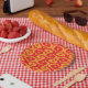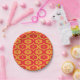 Plato De Papel Atomic Starbursts on Red and Orange Ogee Pattern