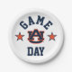 ¡Este diseño enérgica de placas de papel muestra orgullosamente el apoyo a la Universidad Auburn! Presenta el emblemático logo de Auburn "AU", que se exhibe de manera destacada en su centro, vibrante en su naranja tradicional y azul. Encima y debajo del logo, las palabras "JUEGO" y "DÍA" se presentan con audacia en letras arcadas de color azul, capturando perfectamente la emoción del día del juego. Dos vibrantes estrellas naranjas flanquean el logo de la "AU", añadiendo a la pantalla energética. El fondo blanco limpio de la placa la convierte en una elección ideal para cualquier celebración o reunión de un día de juego.