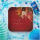Plato De Papel Audaz Caída Floral Sobre El Boda Rojo Quemado