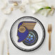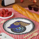 Alerta de fans de autos clásicos y Art Deco! La elegante y sofisticada imagen de este fresco plato de papel, es una sorprendente derivada de un Poster de la concentración de los años 30 que presenta una cara trompe l'oeill creada desde el principio del recorrido en auto de los años 30, realzada por Leslie Sigal Javorek, que también agregó al fondo un neumático de ruedas elegantes.