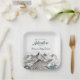Este plato de papel de ducha para bebés ofrece un ambiente rústico de aventura montañosa con un paisaje acuático natural de montañas, estanques y pinos. Esto es perfecto para un evento al aire libre.
