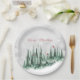 Plato De Papel Aves cardinales del bosque de pinos navideños
