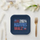 En 2024 Harris Walz, fiesta de la noche de las elecciones, placas con la bandera estadounidense y el burro demócrata en rojo, blanco y azul. Votar por Kamala Harris y Tim Walz para presidente y vicepresidente como candidatos fiestas democráticos. Guay, diseño patriótico.