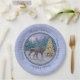 Plato De Papel Azul invernal de ciervo y árbol de Navidad