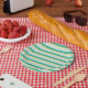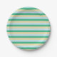 Plato De Papel Azul pálido, rayas Aqua Green y Beiges
