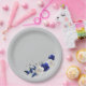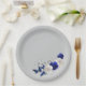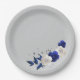 Plato De Papel azul real flores blancas gris