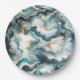 Plato De Papel Azul Teal Oro Blanco Mármol Ágata Boda Moderna