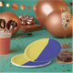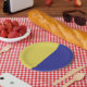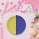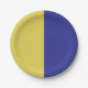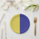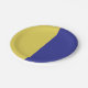 Este plato de papel tiene amarillo por un lado y azul por el otro.