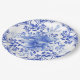 Plato De Papel Azulejo Floral Azul y Blanco con Pájaro