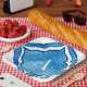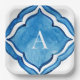 Plato De Papel Azulejo Monograma II Azul Cobalto Mediterráneo