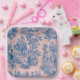 Plato De Papel Azulejos de jouy azul y rosa elegante