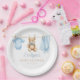 Estos adorables placas de papel para bebé tienen ropa azul para bebé en un tendedero y pueden ser personalizados con su nombre y fecha especial. Diseñado por Thisisnotme©