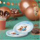 Placas de papel para bebé de un niño azul y marrón. Un niño con acuarela y un Corgi Puppy a su lado.