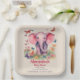 ¡Haga que su ducha de bebé destaque del resto con estas deliciosas placas de papel Baby Shower para elefantes bebés! Un adorable elefante rosa rodeado de flores y mariposas. Hay mucho espacio para personalizarlo para la esperada madre. ¡Mezcla y combina con nuestros otros productos fiestas de la tienda My Baby Boutique!