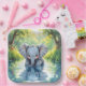 A sweet first birthday paper plate with an elephant theme. A cute baby elephant looking at his reflection in the water.