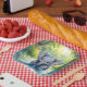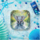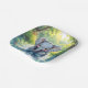 A sweet first birthday paper plate with an elephant theme. A cute baby elephant looking at his reflection in the water.